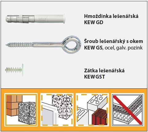 ■ upevňovací systém s rozpěrnou hmoždinkou s dlouhým dříkem a speciálním šroubem s okem