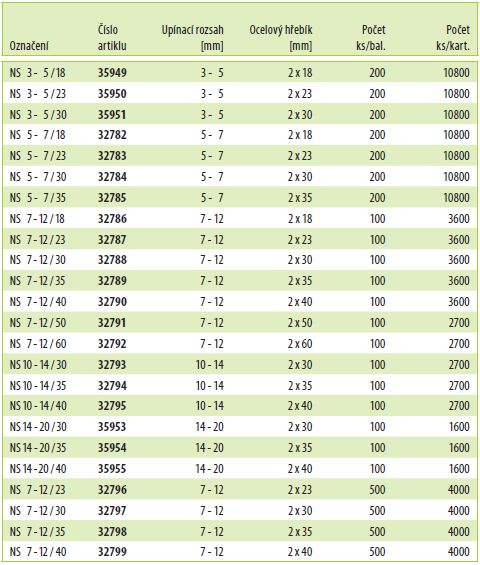 K připevnění rozvodů (3 - 20 mm) v dřevotřísce a tvrdých vláknitých deskách, dřevu, pórobetonu, plných sádr. deskách atd.