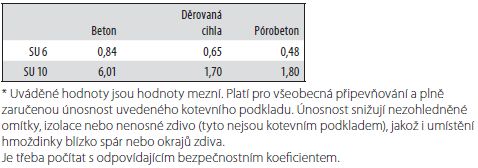 Maximální únosnosti hmoždinky lze dosáhnout jen tehdy, pokud:
