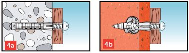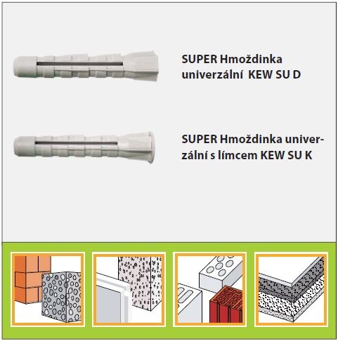 Šrouby s háčkem nebo okem musí mít nutně při kotvení s univerzální hmoždinkou v dutých materiálech a deskách či panelech opěrnou pevnou podložku, aby došlo k zauzlení. V sádrokarto-nových deskách a pod. by se mělo vrtat vrtákem na kov nebo dřevo pro dosažení čistého otvoru a zamezení vylomení sádry. U plynosilikátu nebo pórobetonu, jakož i lehkých, dutých či děrovaných stavebních materiálů se doporučuje vrtat o 1 mm menší otvor, a to bez příklepu.