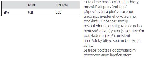 Maximální únosnosti hmoždinky lze dosáhnout jen tehdy, pokud:
