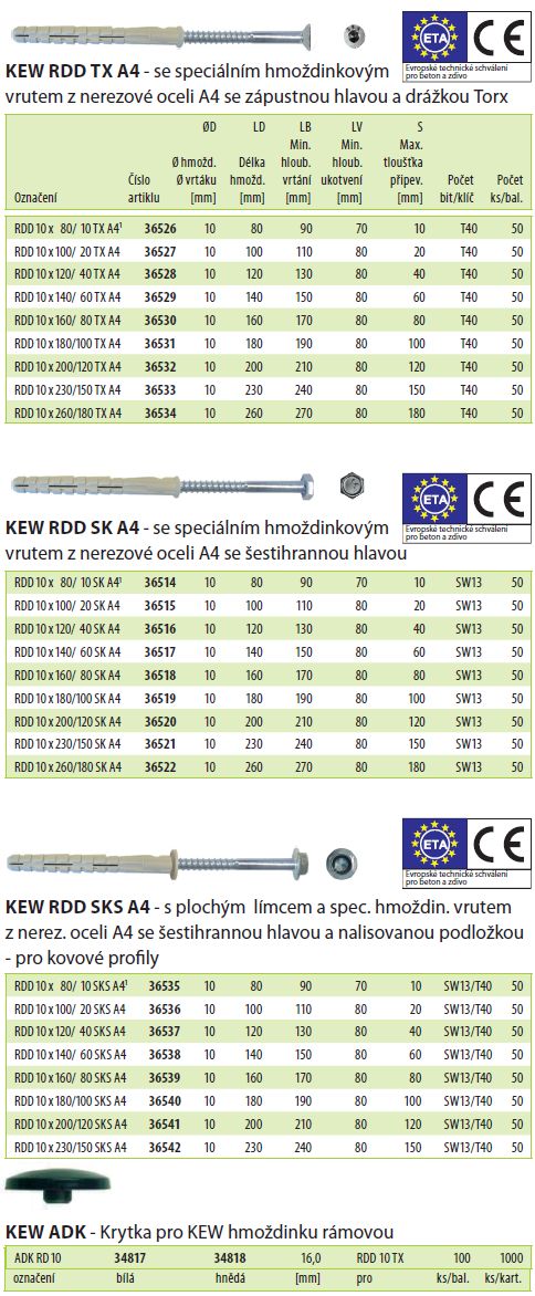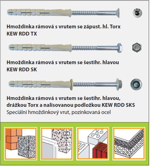 Rámová hmoždinka se smí používat jen způsobem průstrčné montáže, tzn., že připevňovaný stavební dílec nesmí být mezi hlavou vrutu a límcem hmoždinky.