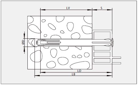Délku hmoždinky volíme tak, aby při upevňování v děrovaných a dutých cihlách rozpěrná zóna hmoždinky zasáhla alespoň jednu příčku dutiny.