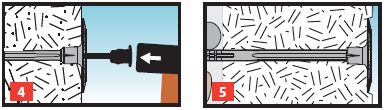 Vyvrtaný otvor je nutno vyčistit kartáčkem nebo z něj prach vysát. Staré omítky nejsou únosným podkladem. Podle toho je třeba zvětšit hloubku vrtání a délku hmoždinky.