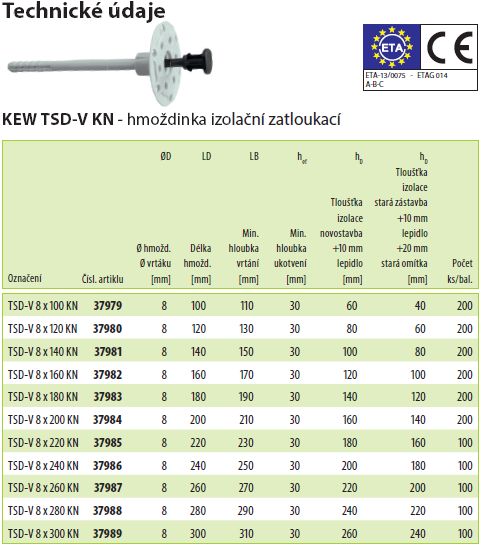 ■ Evropské technické schválení (ETA-13/0075) jako vícenásobné upevnění pro kotvení vnějších tepelně izolačních kompozitních systémů (ETICS) podle ETAG 004